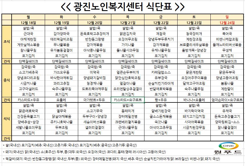 광진소규모요양시설 식단표(2024.1.1-1.7)