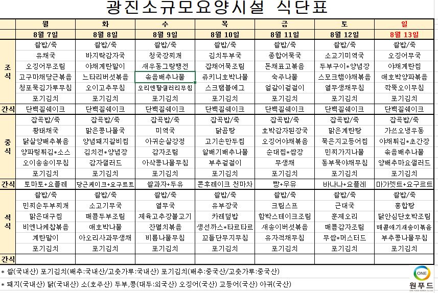 광진소규모요양시설 식단표(8.7-8.13)