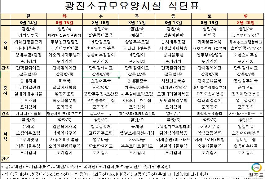 - 센터 사정에 의해 식단은 변경될 수 있습니다.