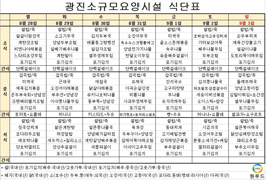 - 센터 사정에 의해 식단은 변경될 수 있습니다.