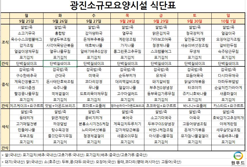 - 센터 사정에 의해 식단은 변경될 수 있습니다.
