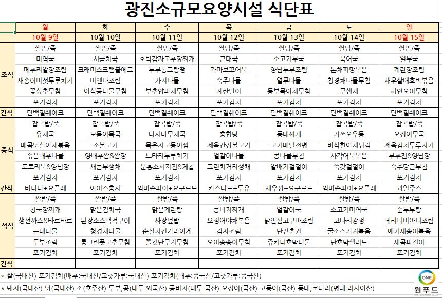 - 센터 사정에 의해 식단은 변경될 수 있습니다.
