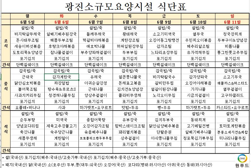 - 센터 사정에 의해 식단은 변경될 수 있습니다.