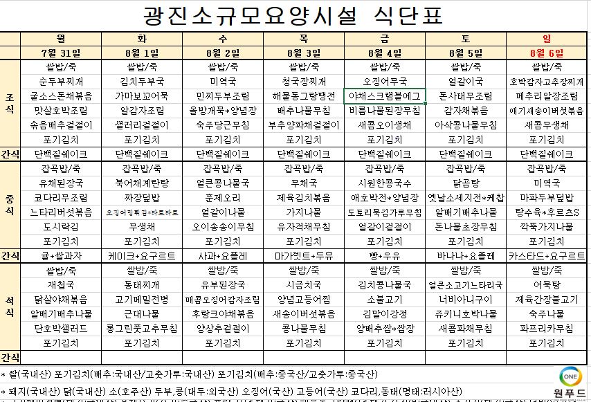 - 센터 사정에 의해 식단은 변경될 수 있습니다.