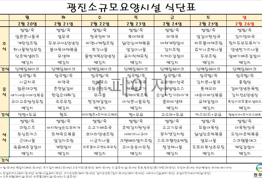 - 센터 사정에 의해 식단은 변경될 수 있습니다.