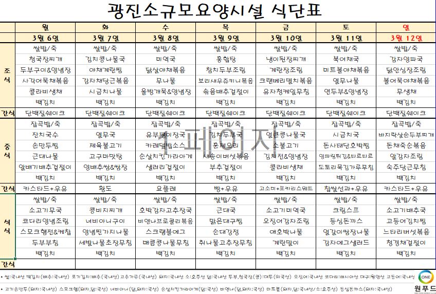 - 센터 사정에 의해 식단은 변경될 수 있습니다.