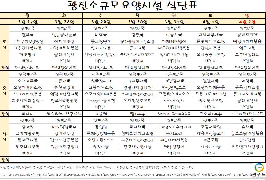 - 센터 사정에 의해 식단은 변경될 수 있습니다.