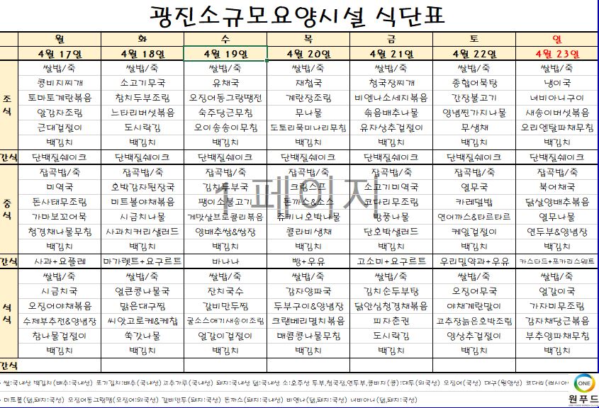 - 센터 사정에 의해 식단은 변경될 수 있습니다.