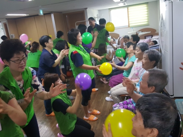 세종섬기미 회원들이 어르신들과 풍선배구를 하며 활기찬 시간을 보냈습니다.