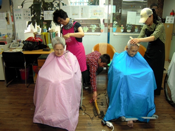 어르신들이 어제보다 오늘 한결 더 멋지게 변신 하셨습니다.