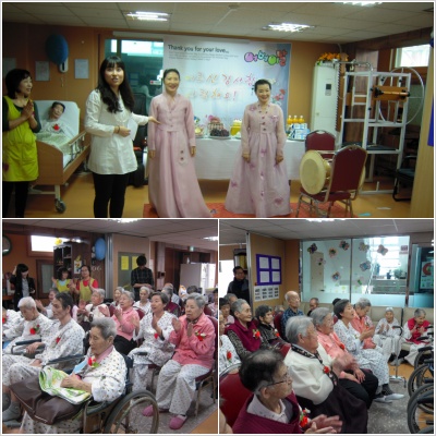 어버이날을 맞아 요양원과 데이케어센터에서 행사를 마련하였습니다. 카네이션 꽃을 달아드리고 민요공연을 보시며 즐거워하시는 어르신들을 보니 마음이 따뜻해집니다*^^*