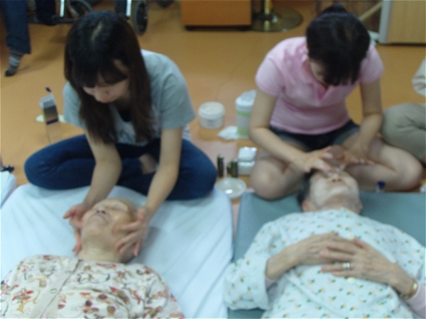 어르신들의 백옥같은 피부를 책임지기 위해 아모레에서 직원들이 오셔서 봉사활동을 했답니다.