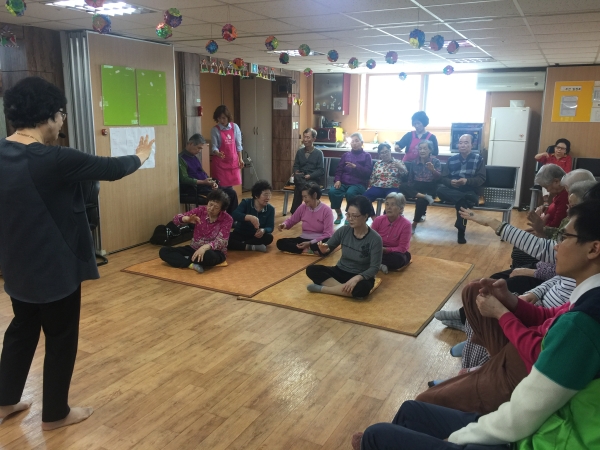 웃음치료 선생님의 열심을 다해서 강의하는 모습입니다
