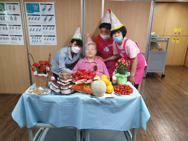 코로나19로 인해 어르신 한분씩 잔치상을 차려드렸습니다.